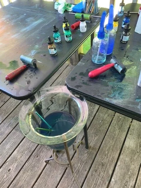 During the research I did for “Intervisible”, I became curious about mills and rivers. After the cotton industry in New England collapsed, the dams were left on the rivers. While they’re no longer functional, they continue to disrupt river and watershed ecosystems. The wet loose color, and more carefully composed patterns reflect the natural processes and unintended consequences at work in the watershed.