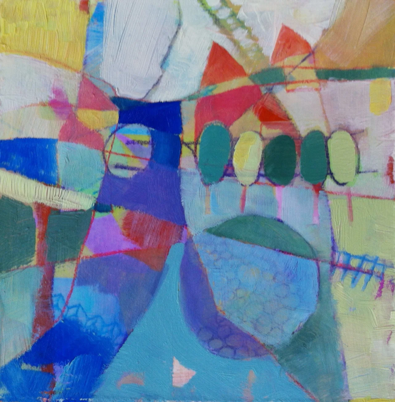 Across the Tracks From a series of three abstracted landscapes. Mixed media on canvas, 6” x 6”. April 12, 2012