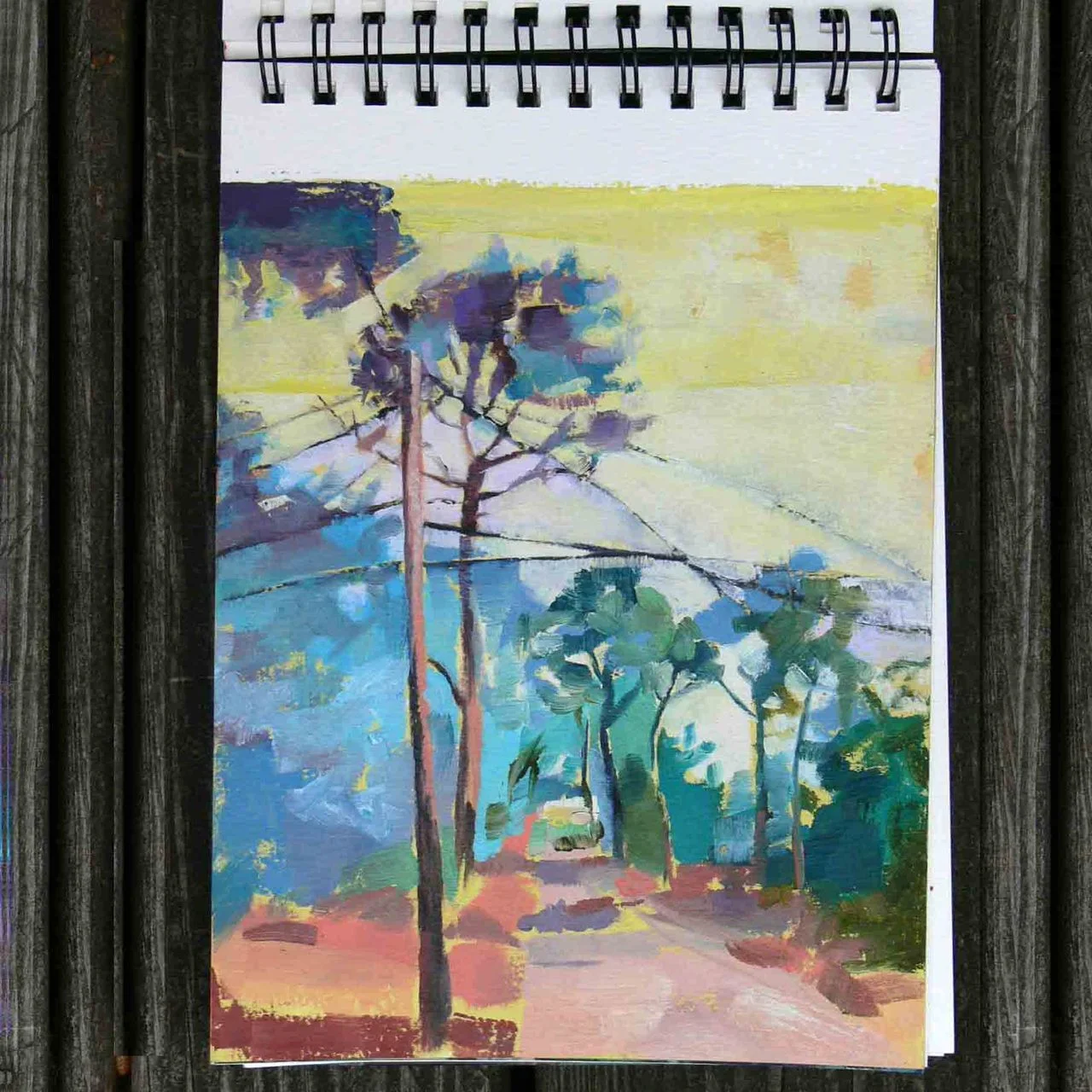 Here are several images from my Cape Cod sketchbook. I went with the intention of filling my mind with the shapes of the lowly scrub pine. Those weather beaten trees are a real icon of the Cape for me, more even perhaps than the shore views. I want to bring these newly observed trees into my dream tree paintings.