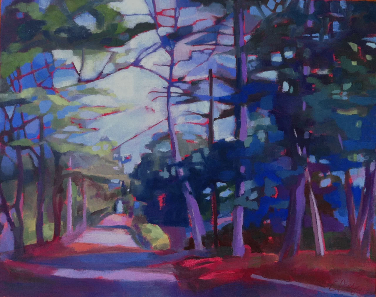 "Hot Path, Cool Night" 16" x 20" oil on canvas March feels like August this year, reminding me of the heat that comes up off the road even as the sun goes down and the shade gets a bit cooler. March 22, 2012
