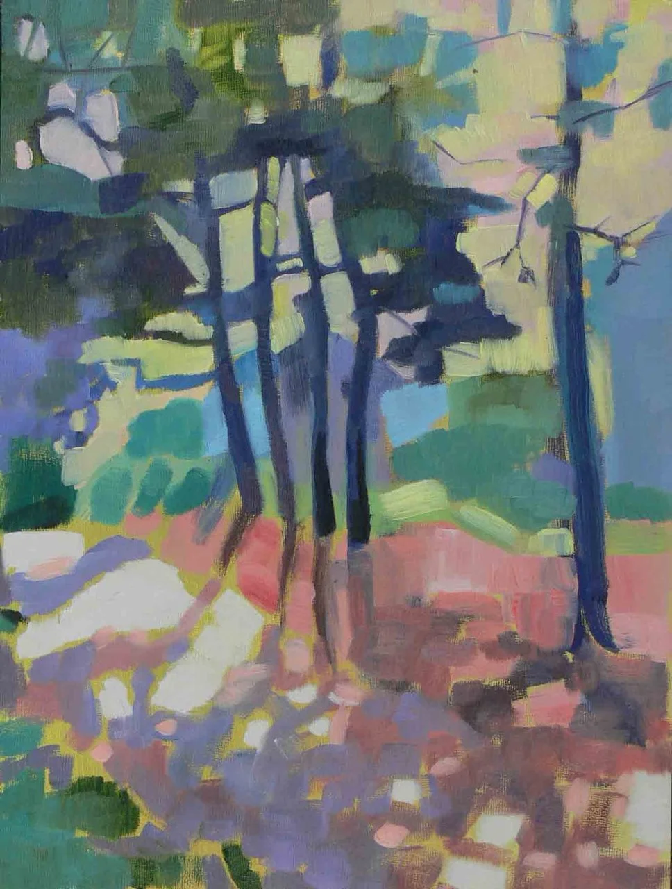When we go to the Cape, John and I give each other several hours a day to paint. I was really glad to have my painting time in the morning again this year. I had wanted to get images of trees with back-lighting and lots of shadows in the foreground. Getting up before six to catch the low sun and long shadows was perfect - if exhausting. This one will definitely inform my dream tree series, especially in the loose and abstract approach to the shadows.