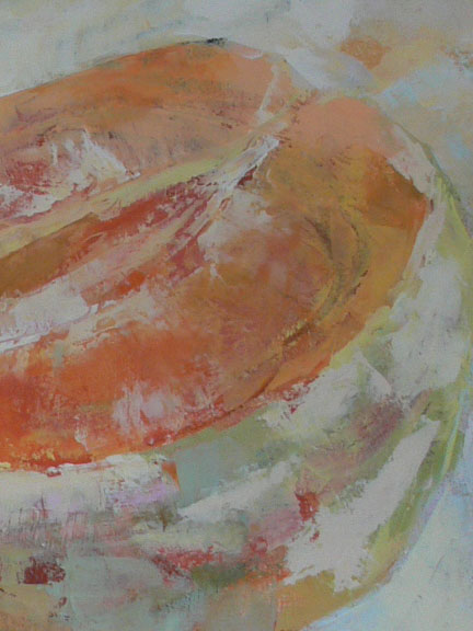 Who doesn’t love the gorgeous visuals in Whole Foods? I stopped in after seeing a movie the other night (okay, I admit it was a vampire movie) and these California Mandarin Oranges seduced me into buying them. I have no idea how they taste, but 3 small studies and one 48” x 36” painting later, I know I love the way they look.